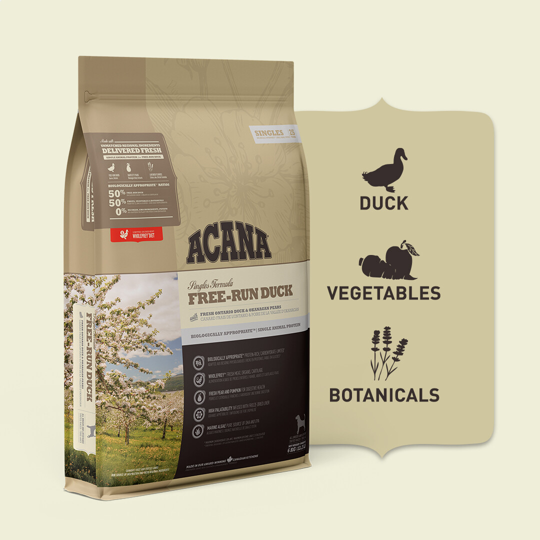 Each recipe in the ACANA Singles range features a single animal protein, perfectly paired with fruits or vegetables to