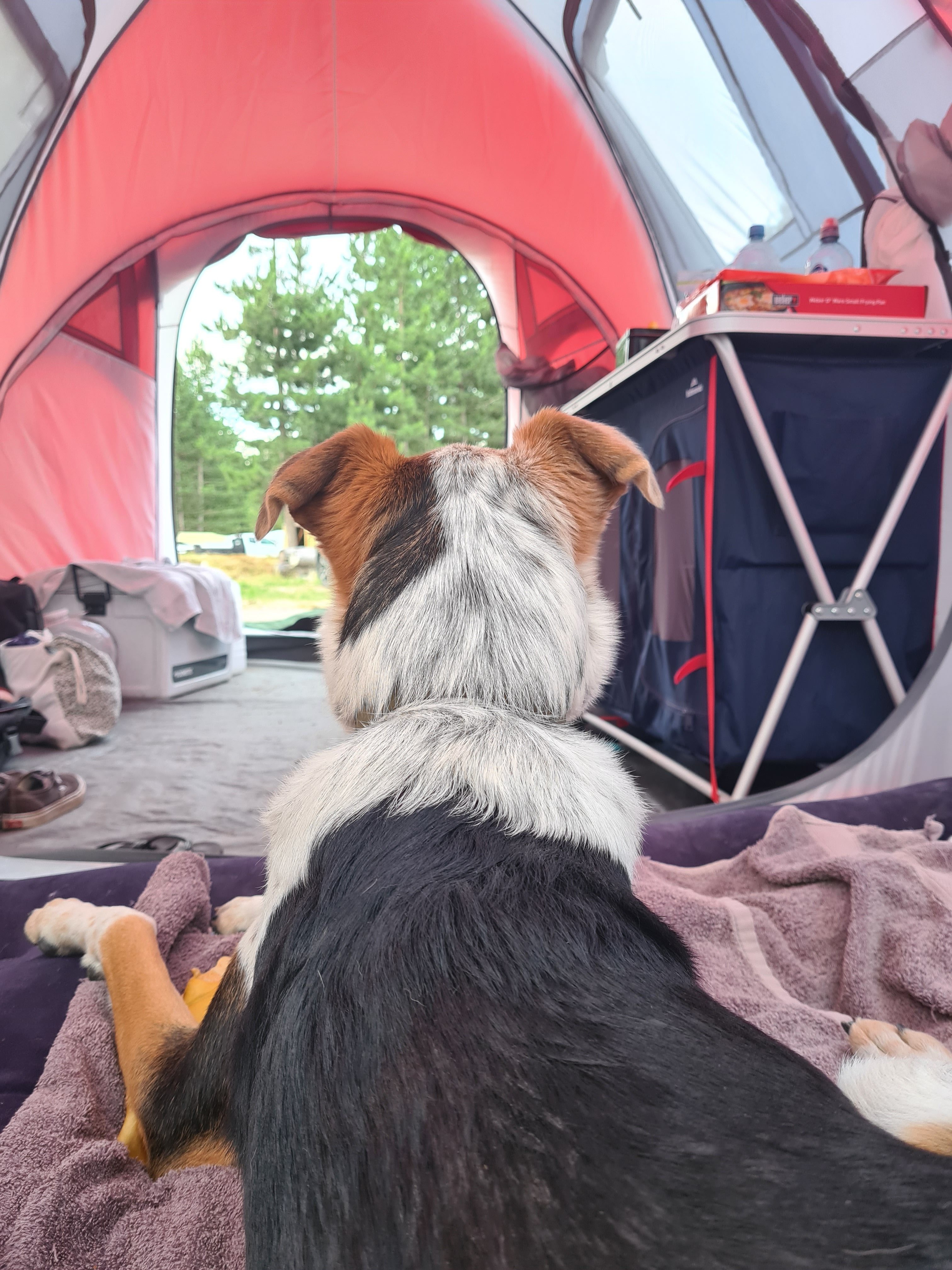 Even if your dog is reactive it does not mean they should miss out on camping. When you arrive at a campsite and find you have neighbours, pop over and let them know about your dog, especially if they have kids. This way they can respect your dog's space and avoid walking through your camp spot or coming over to pat your dog.