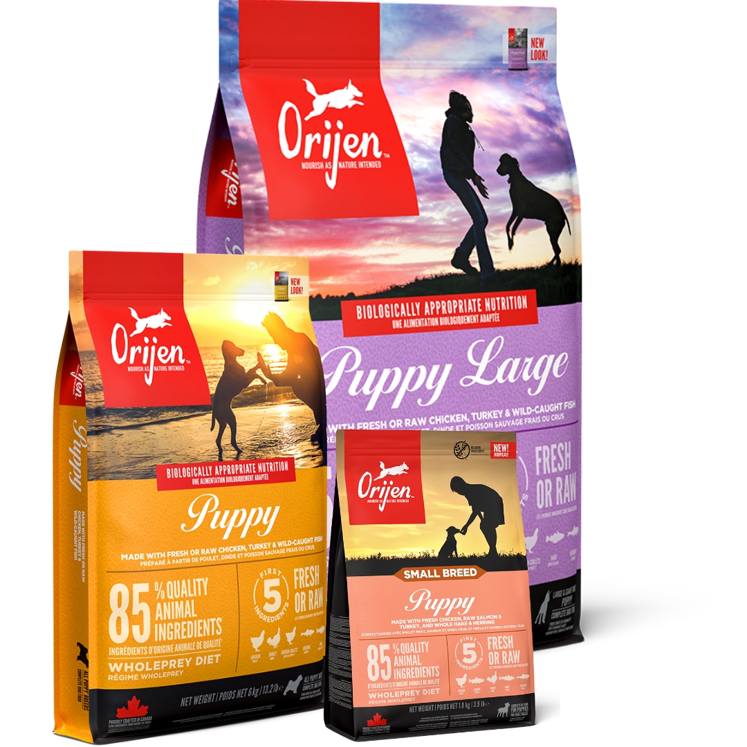 With ORIJEN Puppy Large Breed | Puppy | Small Breed Puppy ranges available, whatever breed of dog you are welcoming into the family, ORIJEN has a recipe for you!