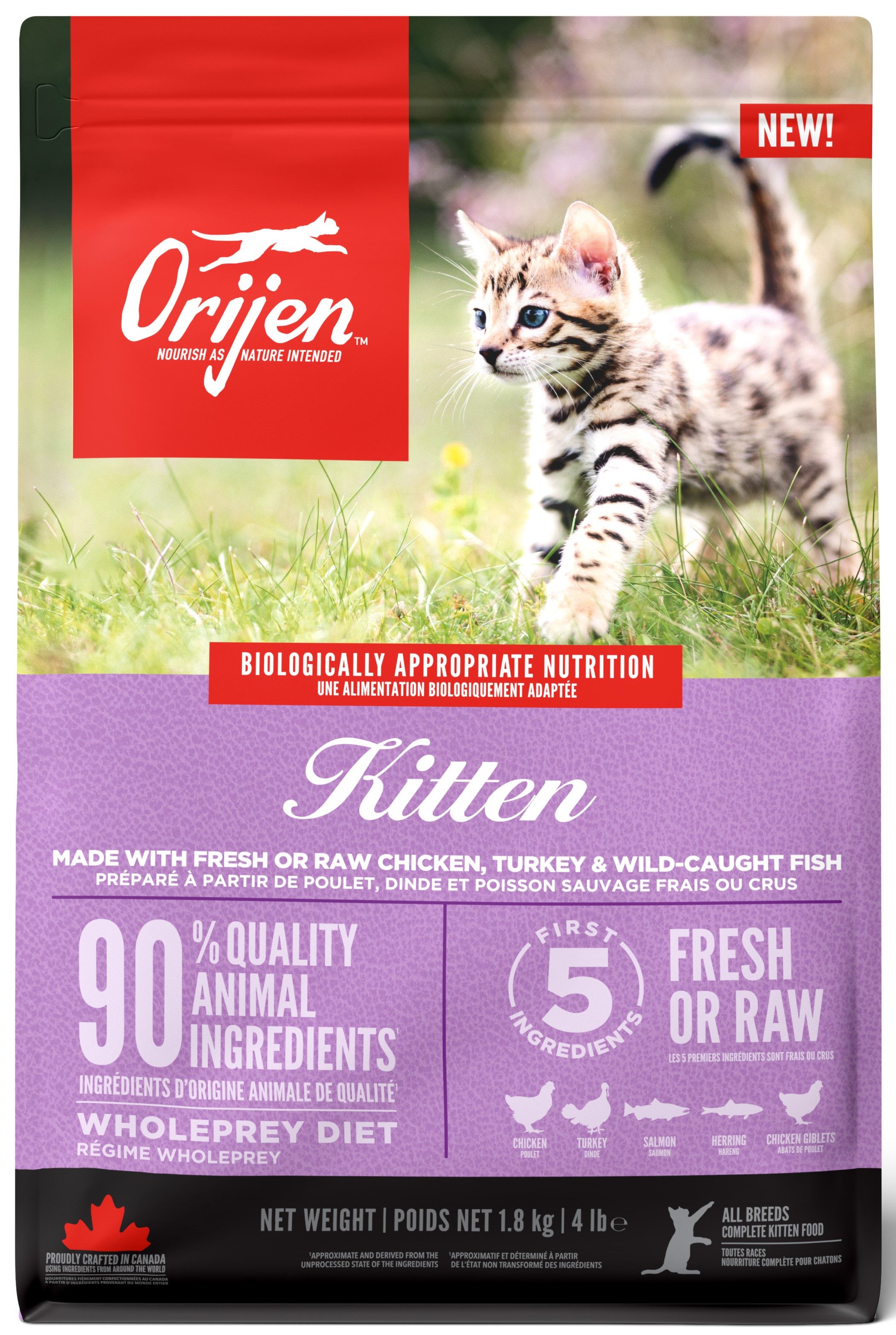 Just like babies, kittens have special nutritional needs while they are growing. They require more energy and more protein than adult cats, as they’re very active and quickly growing. To help, you’ll want to ensure that you pay attention to the label on the cat food you are feeding your kitten – is it for adults, kittens, or all life stages? Both ORIJEN & ACANA have kitten recipes that have been tested to be nutritionally balanced for your growing kitten.