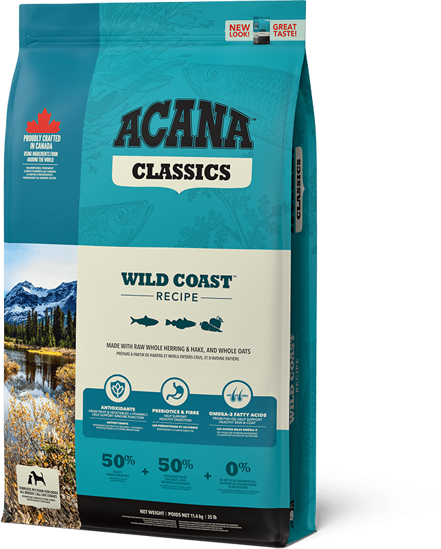 Loaded with nourishing protein and Omega-3 fatty acids, ACANA Wild Coast features sustainable fish, wild-caught off North