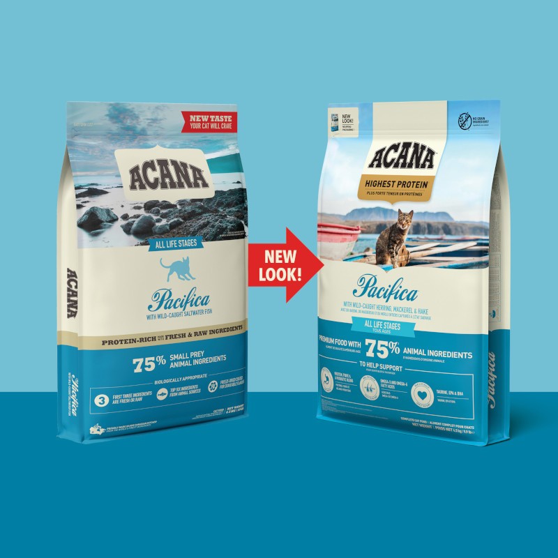Satisfy your cat’s craving for fish with ACANA™ Highest Protein Pacifica—a flavourful blend of wild-caught whole mackerel, herring, and hake. Packed with 75% quality animal ingredients, this high-protein recipe offers a rich variety of nourishing fish to help support your cat’s strength and vitality. From promoting healthy digestion to supporting skin, coat, heart, and eye health, Pacifica delivers quality nutrition for cats who crave the taste of the ocean.