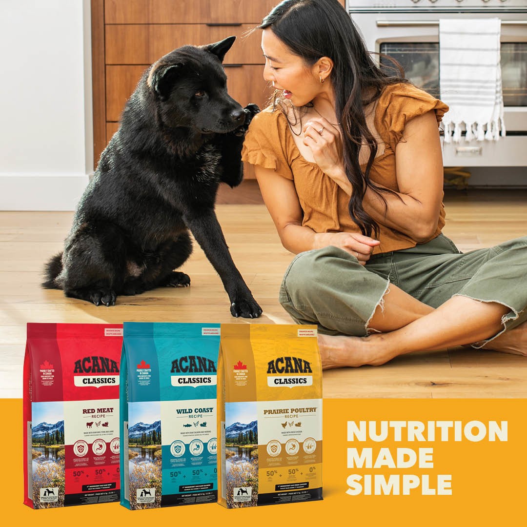 Give your dog the goodness of simple, balanced nutrition with ACANA™ Classics Prairie Poultry. Crafted with a 50/50 blend of quality poultry ingredients and wholesome fruits, grains, and vegetables, this recipe delivers hearty flavour and premium nutrition in every bite. With nutrient-dense ingredients to support immune health, digestion, and a healthy skin and coat, it’s a great everyday choice for keeping your dog happy and healthy.