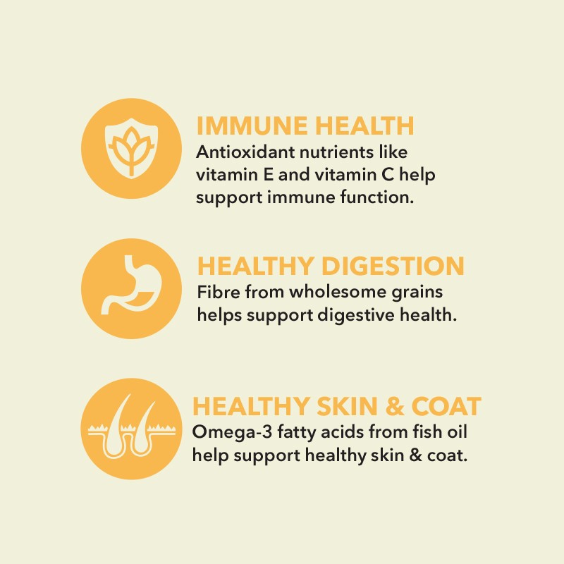 • Omega-3 fatty acids from fish oil to help support healthy skin and coat.