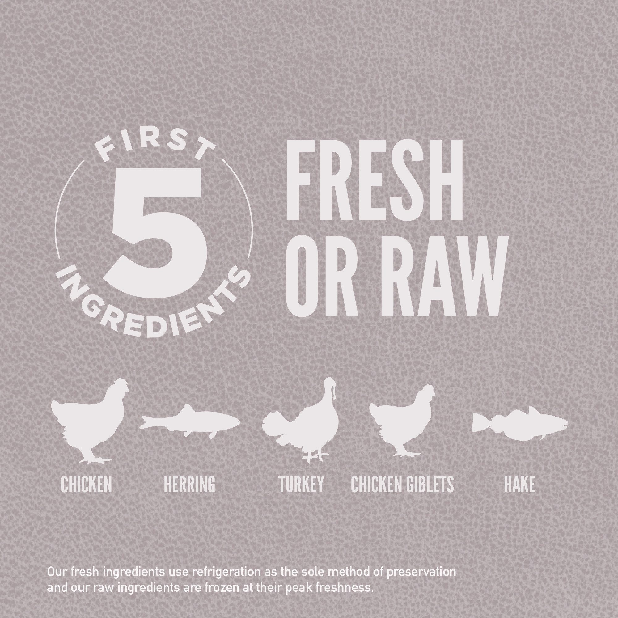 - FRESH OR RAW: 2/3 of ORIJEN's meat is FRESH (refrigerated) or RAW (frozen at the peak of freshness) to preserve nutrients.