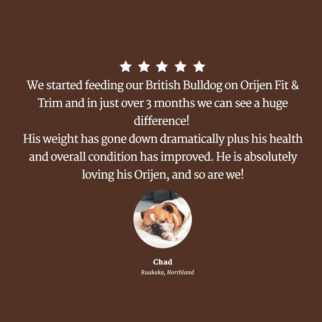 For dogs that need help maintaining a healthy weight, ORIJEN™ Fit & Trim offers the perfect balance of high-quality protein and nutritious ingredients. This specially crafted formula is made to support lean muscle mass, healthy metabolism, and optimal conditioning. Packed with 85% quality animal ingredients like fresh chicken, turkey, raw whole hake, herring, and eggs, ORIJEN Fit & Trim provides the rich nutrition dogs need. The combination of protein and fibre helps support a healthy weight and keeps your dog satisfied, while fresh fruits and vegetables provide vital nutrients.