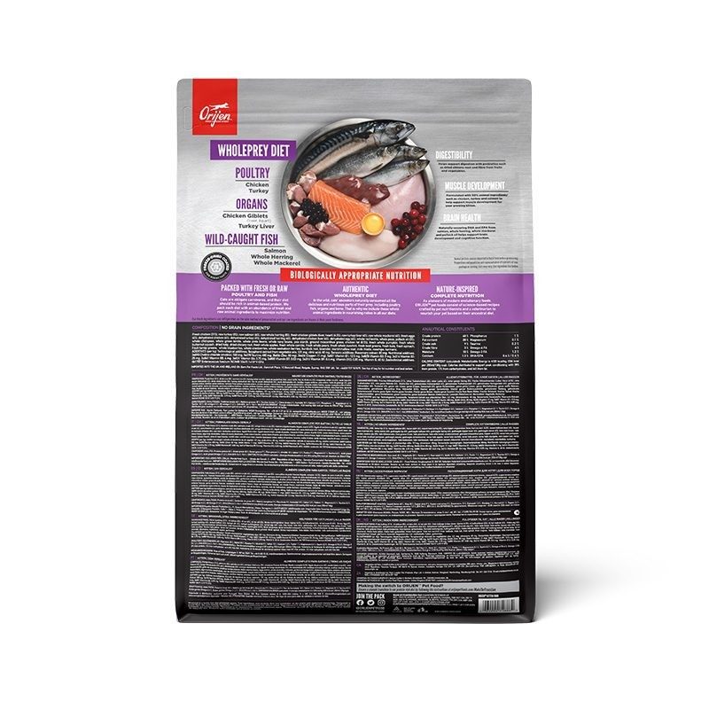 - WHOLEPREY ANIMAL INGREDIENTS: Featuring WholePrey ratios of meat, organs, cartilage or bone—plus whole fish and cage-free eggs—ORIJEN provides the nutrients your cat needs to thrive.