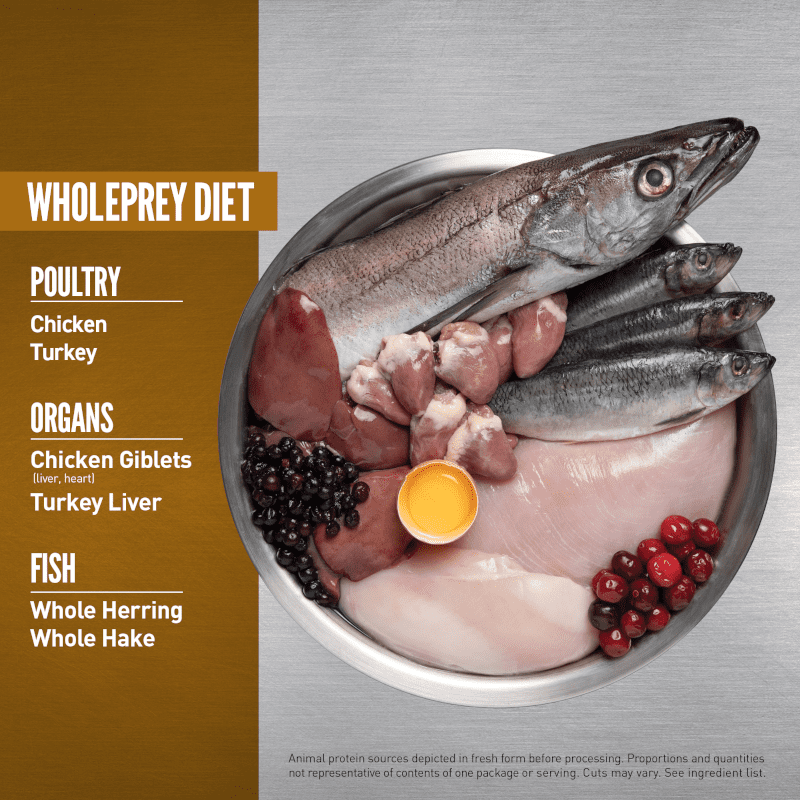 - WHOLEPREY ANIMAL INGREDIENTS: Featuring WholePrey ratios of meat, organs, cartilage or bone—plus whole fish and cage-free eggs—ORIJEN provides the nutrients your puppy needs to thrive.