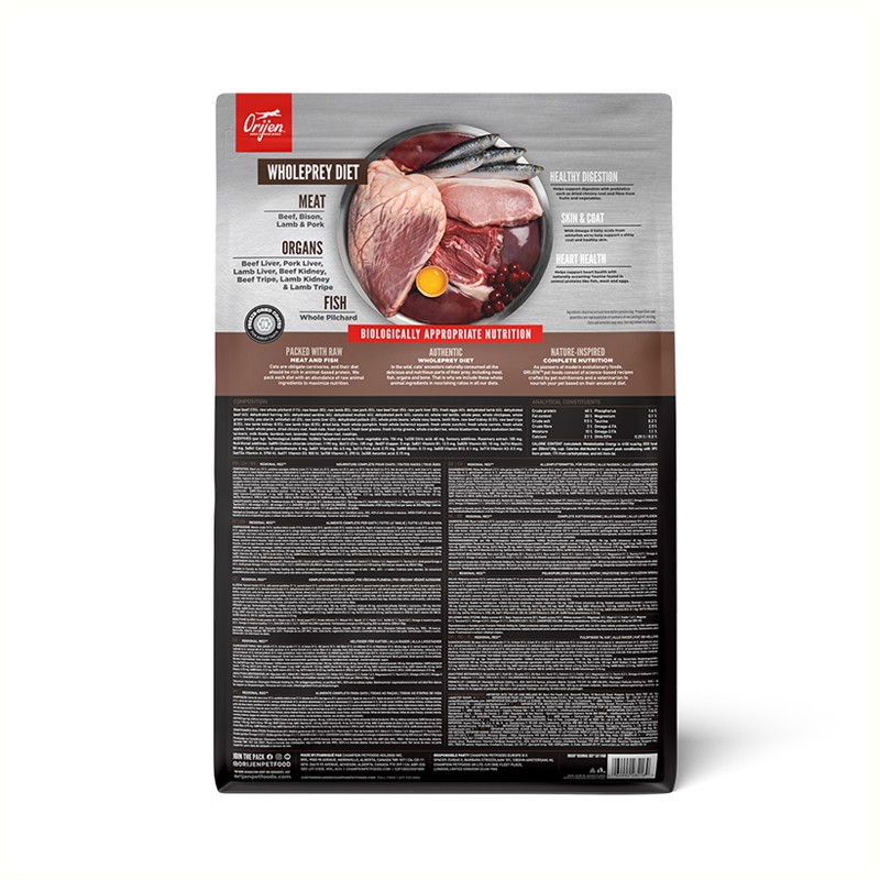 • WHOLEPREY ANIMAL INGREDIENTS: Featuring WholePrey ratios of meat, organs, cartilage or bone—plus whole fish and cage-free eggs—ORIJEN provides the nutrients your cat needs to thrive.