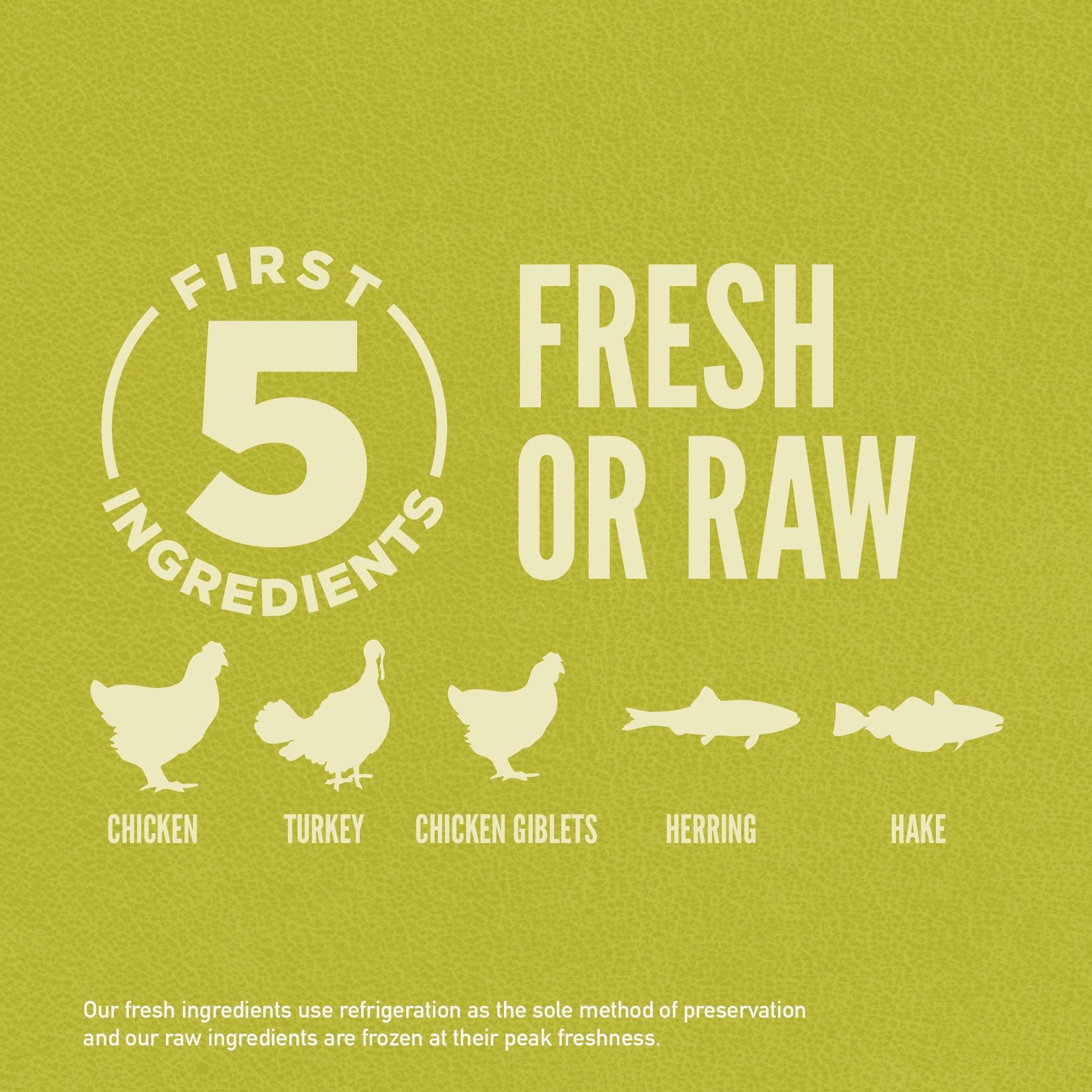 - FRESH OR RAW: 2/3 of ORIJEN's meat is FRESH (refrigerated) or RAW (frozen at the peak of freshness) to preserve nutrients.