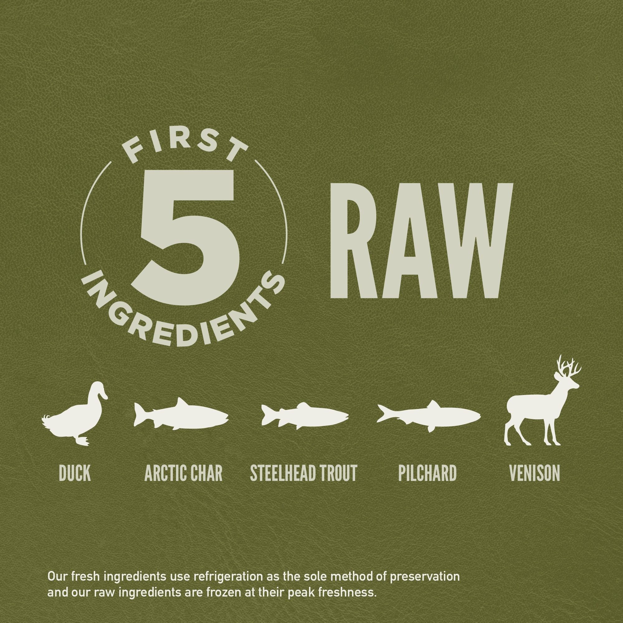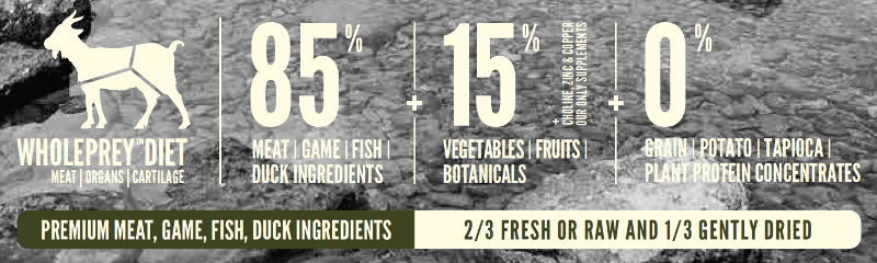 • FRESH OR RAW: 2/3 of ORIJEN’s meat is FRESH (refrigerated) or RAW (frozen at the peak of freshness) to preserve nutrients.